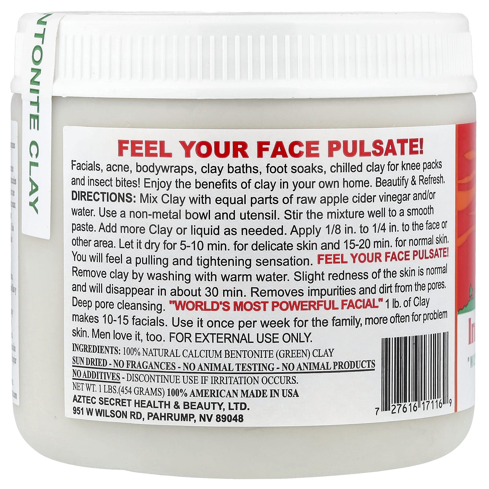 Aztec Secret Indian Healing Clay 454 g (1 lb) – Aztec Secret Beleza Máscaras Faciais de Beleza Máscaras Faciais Enxaguáveis.