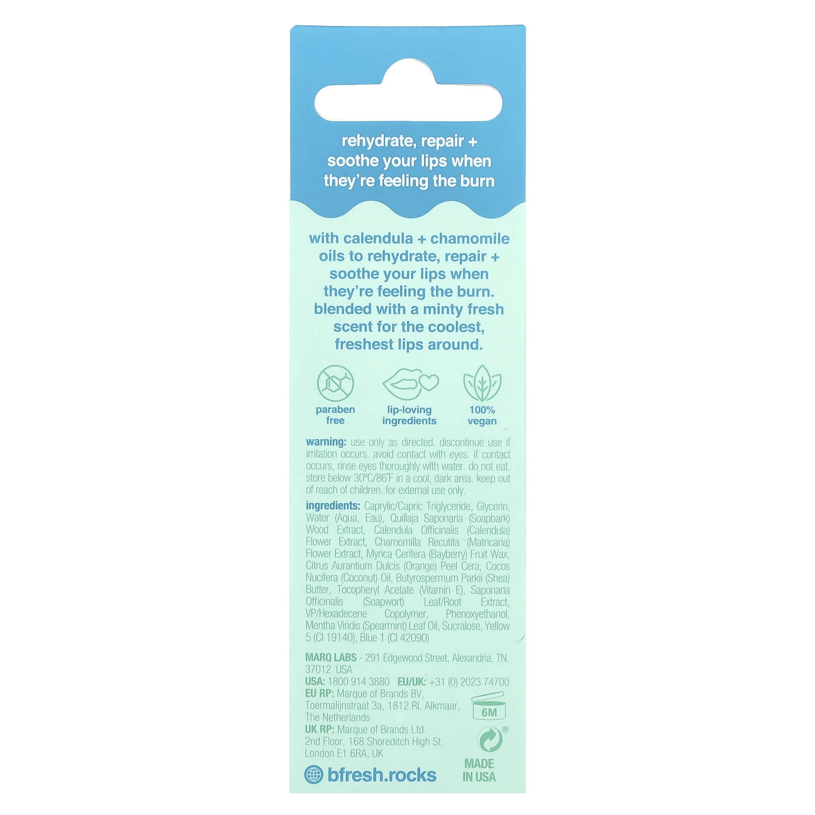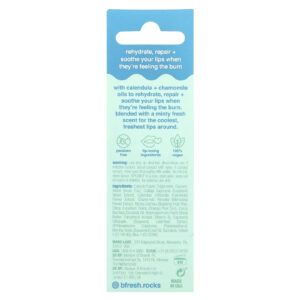 With calendula + chamomile oils to rehydrate, repair + soothe your lips when they’re feeling the burn. Blended with a minty fresh scent for the coolest, freshest lips around.