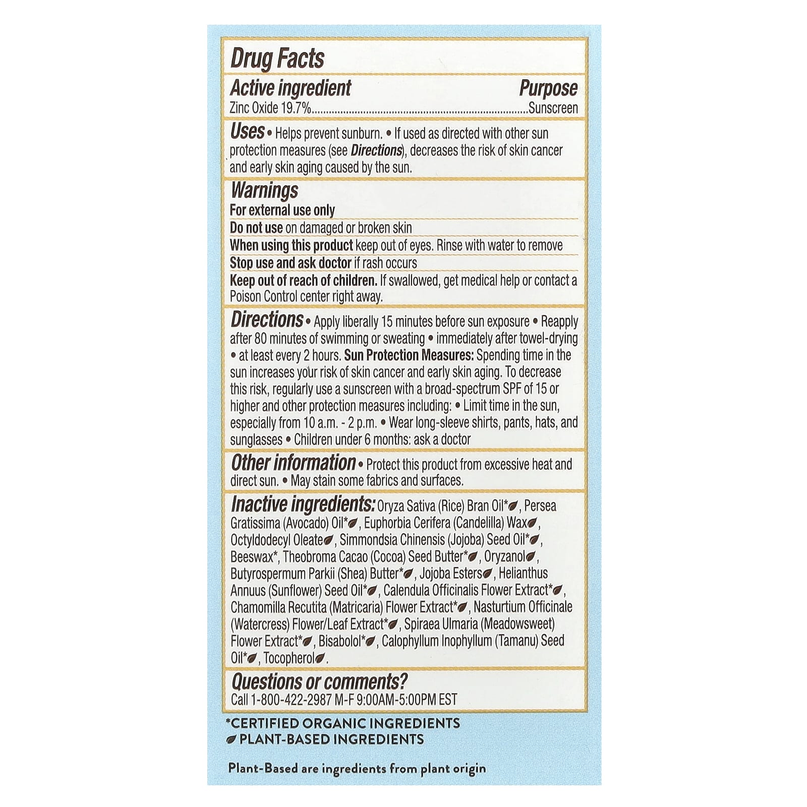 Protetor solar mineral de óxido de zinco em bastão com espectro amplo de FPS 50 para rosto e corpo. Contém 70% de ingredientes orgânicos certificados, como óleo de abacate e manteiga de karité, para hidratar a pele. Ótimo para qualquer lugar. Você pode se sentir bem usando este protetor solar em bastão para bebês sem perfume no seu filho.