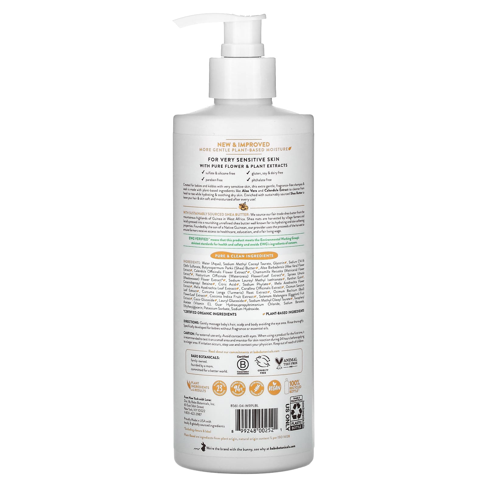 Criado para bebês e crianças com pele muito sensível, este shampoo e sabonete líquido sem fragrância e extra-suave é feito com ingredientes à base de plantas, como Extrato de Calêndula e Babosa, para limpar da cabeça aos pés enquanto hidrata e acalma a pele ressecada. Enriquecido com Manteiga de Karité de origem sustentável para deixar seu cabelo e sua pele macios e hidratados após cada uso!