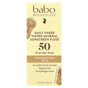 Babo Botanicals Protetor Solar Mineral com Cor da Daily Sheer FPS 50 Sem Perfume 50 ml (17 fl oz) – Babo Botanicals Bebês e Crianças Segurança para Bebês e Crianças Protetor Solar para Bebês e Crianças Banho e Cuidados Pessoais Protetor Solar.