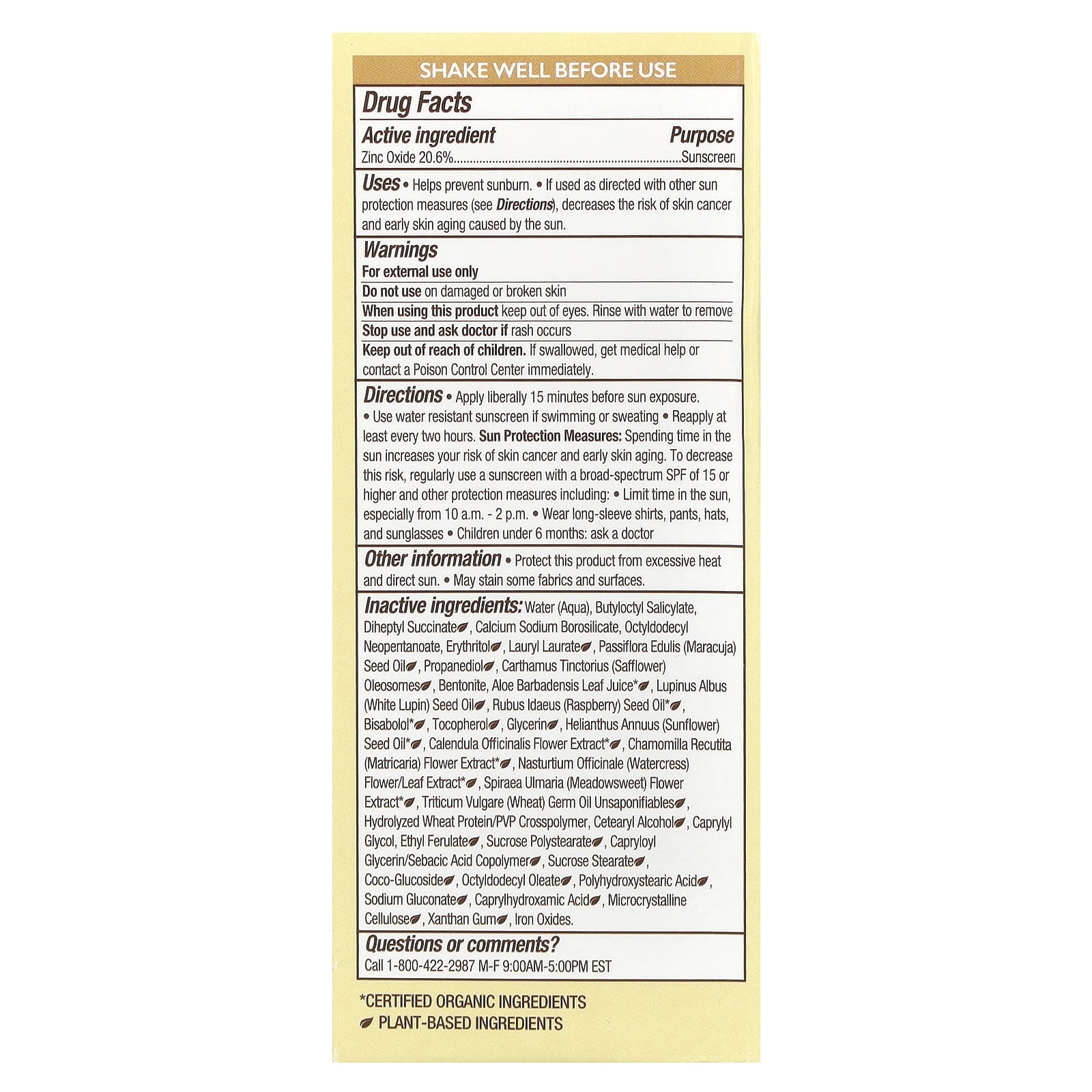 | Água (aqua), salicilato de butiloctila, succinato de di-heptilo, borossilicato de cálcio e sódio, neopentanoato de octildodecila, eritritol, laurilato de laurilo, óleo da semente de Passiflora edulis (maracujá), propanediol, carthamus tinctorius (cártamo), oleossomos de aloe vera *, óleo da semente de Lupinus albus (tremoço branco), óleo do germe de triticum vulgare (trigo) insaponificável, óleo da semente de Helianthus annuus (girassol) *, extrato da flor de Calendula officinalis *, extrato da flor de Chamomilla recutita (matricária) *, flor de Nasturtium officinale (agrião) / extrato da folha *, extrato da flor spiraea ulmaria (meadowsweet) *, óleo da semente de rubus idaeus (framboesa) *, bisabolol *, tocoferol, proteína de trigo hidrolisada / polímero cruzado pvp, álcool cetearílico, caprililglicol, ferulato etílico, poliestireno de sacarose, capriloil glicerina / copolímero de ácido sebácico, estearato de sacarose, coco-glicosídeo, octildodecil oleato, óxidos de ferro, glicerina, ácido poli-hidroxiesteárico, gluconato de sódio, ácido capril-hidroxâmico, celulose microcristalina , goma xantana. * Ingredientes orgânicos certificados |