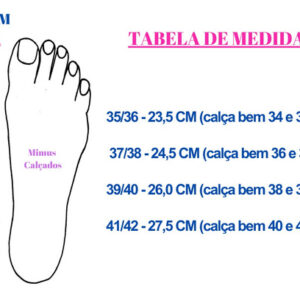 Muitas pessoas preferem comprar um numero maior pra ficar mais folgado. Confira nossa tabela de medidas para receber o produto correto em casa.