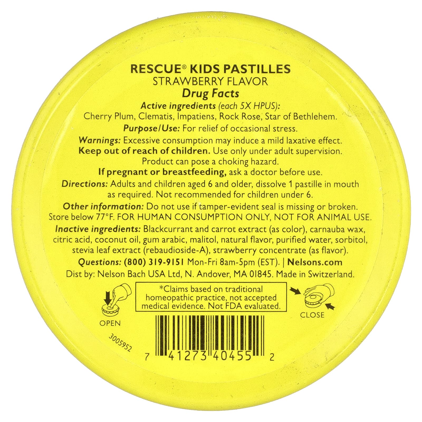 Bach Rescue® Pastilles Kids Alívio do Estresse Morango 35 Pastilhas 50 g (17 oz) – Bach Suplementos Ervas Essências Florais Cérebro e Cognição Alívio do Estresse.