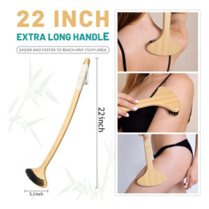 NURENDER Wooden Back Scratcher, Oversized Body Scratcher with 22 Curved Long Handle and 2 in 1 Wide Scratching/Massaging Head, for Itch Relief, Body Brush backscratchers for Adults Men Women – 22 Arc Extra Long Handle. The oversized back scratcher has an extra-long 55cm length and easily reaches any part of the body. The ergonomic, labor-saving Curved handle fits the body perfectly, making scratching more convenient and easier. – 2 in 1 Wide Scratching Head. The back Body Brush contact area is over 5 wide, wide brush with high quality nylon bristles for quick itch relief. It also has 81 circular contact points, which have a massage effect to relieve fatigue and relax the body. – Wooden Back Scratcher. Made of 100% natural bamboo, no sharp metal and hard plastic, healthy and skin-friendly. No allergies and skin damage. It is waterproof and can also be used as a bath brush. – Comfort & Durability. The Body Brush handle is wrapped with cotton thread for a comfortable grip. Top cotton cord hanging cord easy to hang. The brush head is packed by the study shell, avoid crushed in transit, also for dust protection in daily use. – Wide Application. A useful backscratchers for adults that effectively relieves itching. Especially suitable for the elderly, the pregnant, and people who are overweight. Back scratcher for man is also a great gift for your family, friends!
