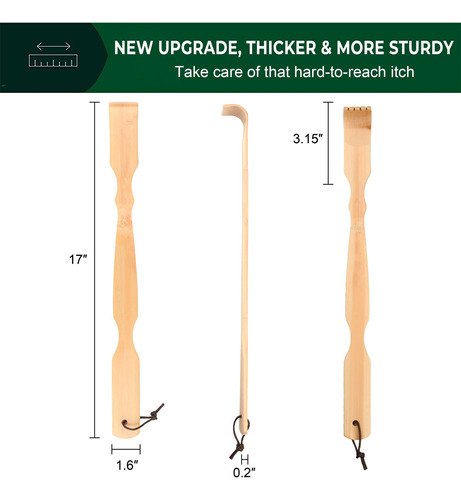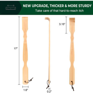 mais longa que economiza trabalho. Este é um arranhador de bambu de 17 compridos em forma de arco, fácil de tocar na coceira que você não consegue alcançar de forma conveniente e precisa, não precisa mais se curvar e coçar as costas e ajuda a se livrar dos problemas de coceira. Adequado para uso por mulheres grávidas, idosos, adultos, homens e mulheres em casa ou no escritório, como seu arranhador de costas perfeito.