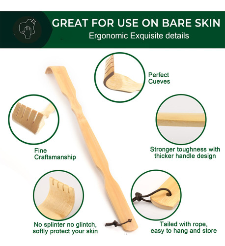 Care For Skin Os materiais de bambu 100% naturais são selecionados e processados, puros e ecológicos. O Scratch Craw foi polido várias vezes, suave superficial e sem odor, não é fácil arranhar a pele como outros arranhões semelhantes, alivia melhor a coceira nas costas. Design de alça espessada com excelente resistência à pressão e durabilidade. (É um fenômeno normal de textura diferente na superfície do arranhador, pois usamos matérias-primas naturais)