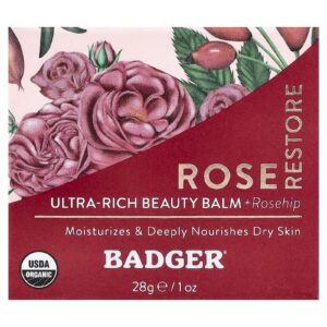 Badger Bálsamo de Beleza Ultra-Rico + Rosa Mosqueta Rosa 28 g (1 oz) – Badger Beleza Hidratantes Faciais e Cremes Hidratantes e cremes para a noite Cuidados Pessoais Cuidados com o Corpo Creme para as Mãos.