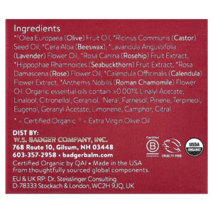 *♢Óleo da fruta de Olea europaea (azeitona), * óleo da semente de Ricinus communis (rícino), * cera alba (cera de abelha), * óleo da flor de Lavandula angustifolia (lavanda), * extrato da fruta de Rosa canina (rosa mosqueta), * extrato da fruta de Hippophae rhamnoides (espinheiro marítimo), * óleo da flor de Rosa damascena (rosa), * extrato da flor de Calendula officinalis (calêndula), * óleo da flor de Anthemis nobilis (camomila romana). óleos essenciais orgânicos contêm >0,001% de acetato de linalilo, linalol, citronellol, geraniol, neral, farnesol, pineno, terpineol, eugenol, acetato de geranilo, limoneno, cânfora, citral.