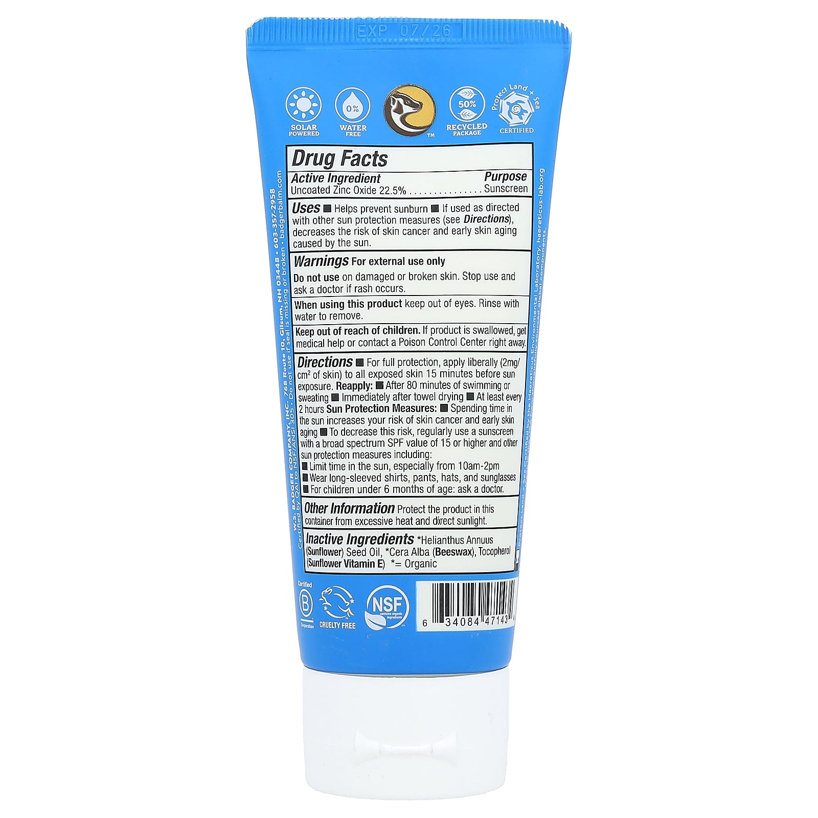 Badger Esportivo Creme Protetor Solar Mineral FPS 40 Sem Perfume 87 ml (29 fl oz) – Badger Banho e Cuidados Pessoais Protetor Solar Protetor Solar Corporal.