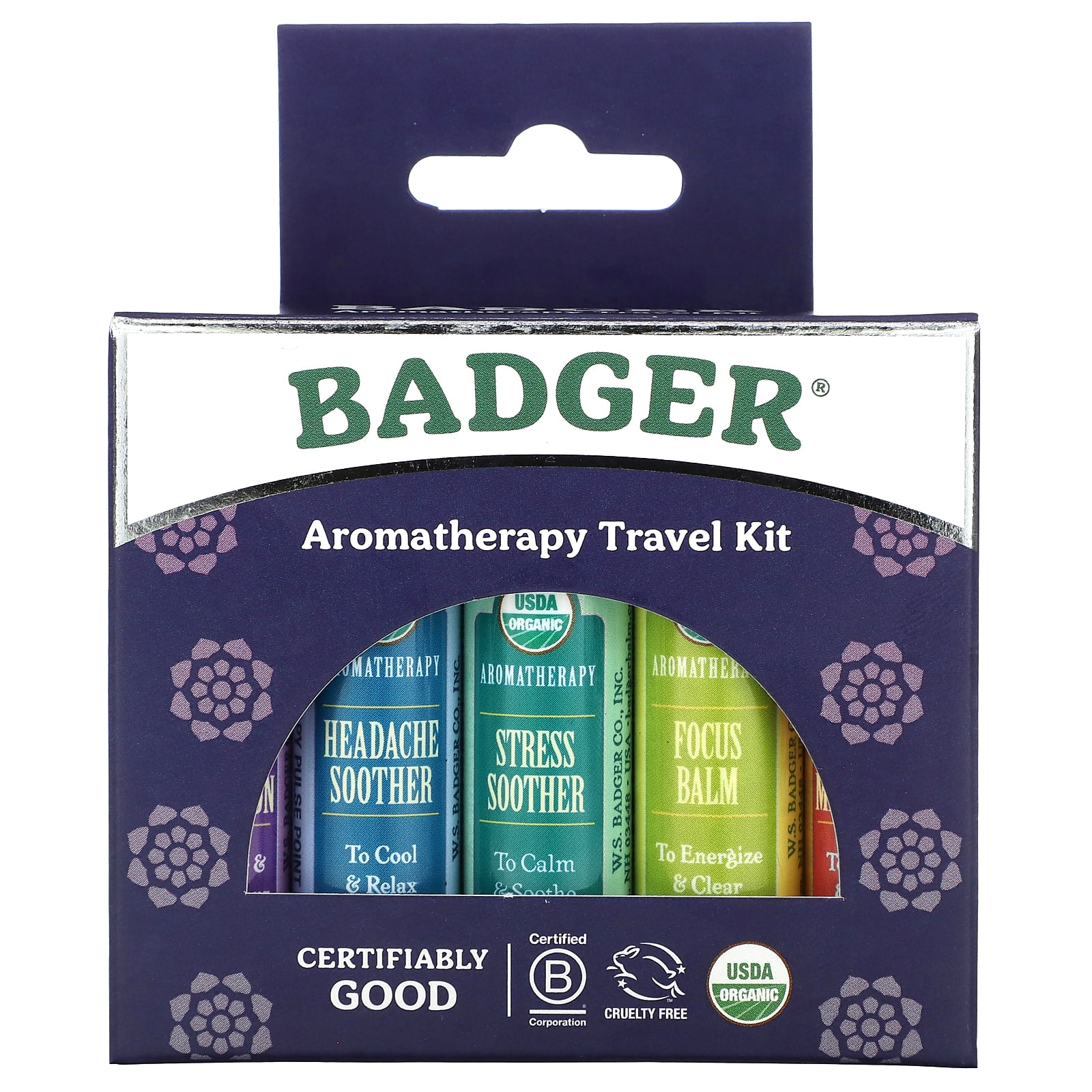 Badger Kit de Viagem de Aromaterapia Orgânica Pacote de 5 43 g (015 oz) Cada – Badger Cuidados Pessoais Óleos Essenciais e Aromaterapia Misturas de Óleos Essenciais Presentes relacionados a spa e banho.