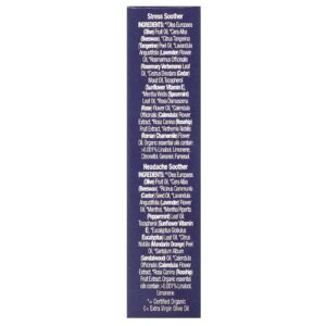 Amenizador de Estresse: * ♦óleo da fruta de Olea europaea (azeitona), *cera alba (cera de abelha), *óleo da casca de Citrus tangerina (tangerina), * óleo da flor Lavandula angustifolia (lavanda), *óleo da folha de Rosmarinus officinalis (alecrim verbenona), *óleo de madeira de Cedrus deodara (cedro), tocoferol (vitamina E de girassol), *óleo da folha de Mentha viridis (hortelã), *óleo da flor de Rosa damascena (rose otto), *extrato da flor de Calendula officinalis (calêndula), *extrato da fruta de Rosa canina (rosa mosqueta), *óleo da flor de Anthemis nobilis (camomila romana). Óleos essenciais orgânicos contêm & gt;0,001% de linalol, limoneno, citronellol, geraniol, e farnesol.