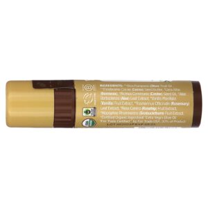 * ♦ Óleo de fruta Olea europaea (oliva), * manteiga da semente de theobroma cacao (cacau), *cera alba (cera de abelha), *óleo da semente de Ricinus communis (rícino), * extrato da folha de Aloe barbadensis (babosa), * extrato da fruta de vanilla planifolia (baunilha), *extrato da folha de Rosmarinus officinalis (alecrim), * extrato da fruta de rosa canina (rosa mosqueta), * extrato da fruta de hippophae rhamnoides (espinheiro).