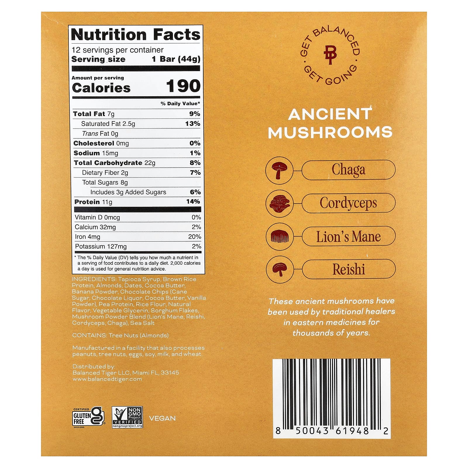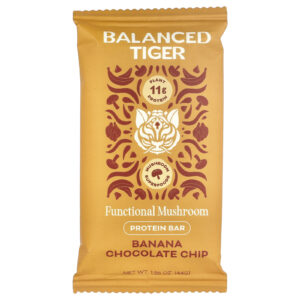 Balanced Tiger Barra de Proteína Banana e Gotas de Chocolate 12 Barras 44 g (155 oz) Cada – Balanced Tiger Nutrição Esportiva Barrinhas e snacks esportivos Barras de Proteína Suplementos Cogumelos Misturas de Cogumelos.