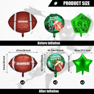 Football Balloons Set, Football Field Balloons and Football Foil Balloons for Taiate Game Day Football Theme Supplies Birthday Party Decoions, 6 Pieces