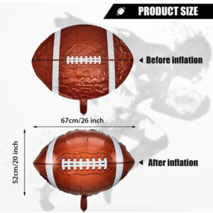 Características: Belo presente: o balão decorativo de alumínio pode ser um belo presente que você pode dar a seu pai, namorado, irmãos, marido e muito mais no Dia dos Pais, Dia dos Namorados, festa de aniversário, festa de Natal, aniversário e muito mais. Este lindo balão de futebol será o favorito de outras pessoas e você receberá muitos elogios delas. Ocasiões disponíveis: os balões de festa de futebol podem ser aplicados em muitos lugares, como festas temáticas de futebol, festa de aniversário, dia de jogos esportivos, Dia de Ação de Graças, festas em casa, reuniões de equipes, eventos ao ar livre e muito mais, fazendo com que a decoração da sua festa mostre um belo efeito visual. Especificações: Material: folha de alumínio Cor: marrom Tamanho: aproximadamente 26 polegadas após ser inflado. Atenção: permita um pequeno erro de tamanho devido à medição manual. As cores podem diferir ligeiramente devido à diferença de tela. – Conteúdo da embalagem: você receberá várias peças de balões de festa de futebol, quantidade suficiente para atender às suas necessidades diárias de uso e substituição, e os balões de futebol são adequados para realizar festas temáticas de futebol, aniversários e reuniões de equipes – Durável e resistente: o balão de futebol é feito de material de alumínio de qualidade, não tóxico e seguro, sem cheiro peculiar, não é fácil de quebrar repentinamente, de boa espessura para você para usar, bem impresso e não é fácil de desbotar, reutilizável e você pode usá-lo muitas vezes – Informações sobre as dimensões: o tamanho do balão decorativo de alumínio após ser inflado é de aproximadamente 26 polegadas, grande o suficiente para você decorar e pode suportar o ar, e pode ser equipado com ar como brinquedo inflável ou equipado com ar para voar para o céu – Decorações para festas temáticas de futebol: o lindo balão foi desenhado em formato de futebol, que atende totalmente à festa temática de futebol, e o adorável balão de futebol está à vista atraente e será apreciada por outras pessoas, por isso é uma bela decoração para sua festa temática de futebol por seu lindo padrão e aparência vívida – Design inteligente: o balão de película de alumínio de futebol pode flutuar e voar, a porta de inflação é selada automaticamente e a bomba selará automaticamente sem vazar após o enchimento. Além disso, basta um canudo que é inserido no orifício da bomba e, em seguida, aperte o balão lentamente, o gás pode ser disparado pelo orifício de perfuração, o que é muito conveniente de usar