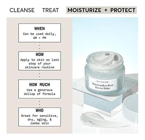 Nosso bálsamo de barreira de raiz de marshmallow é formulado com uma mistura calmante de raiz de marshmallow, centella asiática, aveia coloidal, arnica e cardo leiteiro para reter a umidade e ajudar a fortalecer a barreira da pele ao longo do tempo. O que isso faz O luxuoso e denso bálsamo de raiz de marshmallow fornece uma barreira oclusiva para reter a umidade Um tratamento concentrado de bálsamo de raiz de marshmallow que proporciona uma barreira oclusiva na pele. NÍVEL DE PH:Nível de pH da fórmula: Todas as nossas fórmulas são desenvolvidas para ter pH para apoiar a saúde da pele e garantir a potência ideal. Nossa missão é criar cuidados para a pele biocompatíveis e clinicamente eficazes, formulados com ingredientes naturais potentes e ingredientes sintéticos avançados. Os produtos Naturium utilizam níveis eficazes de ingredientes ativos, têm pH e são exaustivamente testados quanto à segurança. • SELO HIDRATANTE: Nosso bálsamo de barreira de raiz de marshmallow é um bálsamo luxuoso e denso que fornece uma barreira oclusiva para reter a umidade. • FÓRMULA CALMANTE: Nosso bálsamo é formulado com uma mistura calmante de raiz de marshmallow, centella asiática, aveia coloidal, arnica e cardo leiteiro para reter a umidade e ajudar a fortalecer a barreira da pele ao longo do tempo. • COMPLETE SUA ROTINA: Combine com nosso Multi-Calm Cream Cleanser & Skin Soothing Recovery Lotion para um cuidado completo, suavizando e hidratando suavemente sua pele. • TESTADO BIOCOMPATÍVEL E DERMATOLOGISTA: O cuidado da pele Naturium é formulado com ingredientes naturais potentes e ingredientes sintéticos avançados. Utilizamos níveis eficazes de ingredientes ativos, temos nível de pH e somos exaustivamente testados quanto à segurança. • CUIDADOS COM A PELE DE ALTO DESEMPENHO: Livre de crueldade, sem parabenos, vegano, sem glúten, sem fragrância e testado dermatologicamente. Color: Marca: Naturium Dimensiones: 0.11 x 0.07 x 0.06mts. Peso del Producto: 0.17 Kilogramos. Peso de Envio: 0.17 Kilogramos. Modelo: NATR-