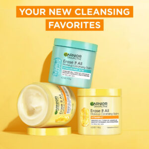 Bálsamo de limpeza de maquiagem Garnier Erase It All com vitamina C, limpador facial iluminador e removedor de maquiagem, 4,2 onças — Apague tudo: este bálsamo de limpeza foi formulado com vitamina C para limpar e remover suavemente todos os tipos de maquiagem de longa duração: olhos, lábios, rosto e resíduos de protetor solar. Use como limpador facial matinal e removedor de maquiagem à noite – Limpa com hidratação 24 horas: graças à sua fórmula alimentada por vitamina C*, nosso bálsamo de limpeza e removedor de maquiagem deixa a pele com uma aparência mais brilhante instantaneamente e com o tempo. Este limpador facial deixa a pele hidratada por 24 horas com acabamento não oleoso – Para melhor uso: para remover a maquiagem e limpar a pele, massageie uma quantidade generosa de bálsamo de limpeza na pele seca usando movimentos circulares. Adicione água para criar uma espuma leitosa e enxágue com água morna – Garnier se compromete com uma beleza mais ecológica: Garnier é aprovada pela Cruelty Free International. Este bálsamo removedor de maquiagem é livre de fragrâncias, sulfatos e silicones e não é comedogênico e não obstrui os poros. A Garnier oferece uma variedade de produtos para suas necessidades de cuidados com o cabelo e a pele, desde xampus, produtos para colorir e modelar até fórmulas que limpam, hidratam e ajudam a proteger sua pele