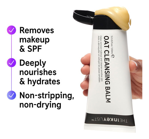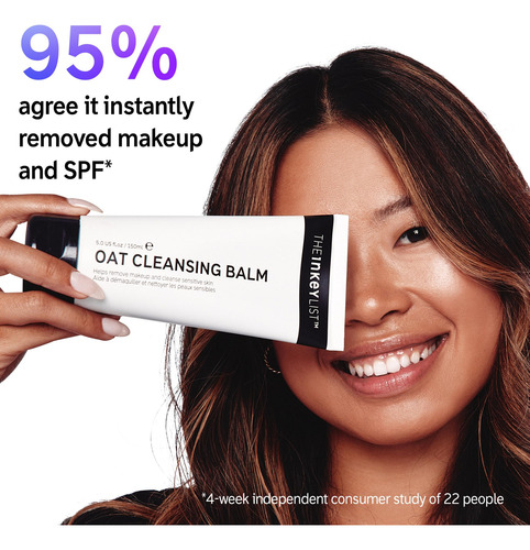 A rich cleansing balm that melts away makeup and dissolves excess oil without stripping or drying out your skin. – The INKEY List Oat Cleansing Balm. Our best-selling cleansing balm. Melt away makeup and impurities without drying your skin. This 3-in-1 cleanser is also a shaving balm in the shower and a 10-minute nourishing facial mask. – Gentle, Yet Effective. This delicate cleanser gently melts away makeup and SPF while leaving your skin uplifted with hydration. Perfect as a first cleanser in your double cleanse routine. – Powerful Ingredients, Real Results. Formulated with Oat Kernel Oil, a rich, natural Oat Oil that hydrates and moisturizes the skin and effectively removes SPF. Colloidal Oatmeal works to visibly reduce redness and soothe irritated skin – How To Use It. Massage a raspberry-sized amount of the Cleansing Balm onto dampened face and neck, then rinse thoroughly. Can be used in your AM & PM skincare routine. – Your Needs, Our Knowledge. We believe that better knowledge powers better decisions. Skincare is a journey, and we are in it together.