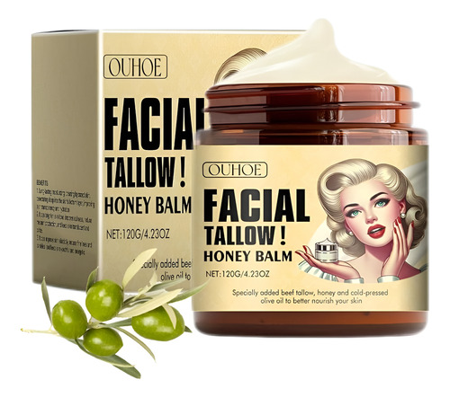 Sebo bovino batido e bálsamo de mel, hidratante de sebo bovino, bálsamo de sebo e mel para o rosto, um hidratante totalmente natural que hidrata e nutre a pele.