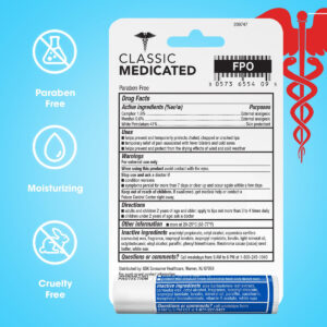Os protetores labiais da nossa confiável coleção ChapStick Classic hidratam e protegem seus lábios dia e noite. Este pacote prático inclui 3 chapsticks medicamentosos clássicos e 1 hidratante original 2 em 1 para cuidados labiais com SPF 15. Sempre tenha seu protetor labial favorito em todas as estações, em casa ou em qualquer lugar. – TRATAMENTO LABIAL HIDRATANTE: Em preparação para cada estação, compre o pacote que inclui 3 tubos do Classic Medicated ChapStick e 1 tubo do hidratante labial 2 em 1 Original Moisturizer com SPF 15. – CURA OS LÁBIOS RACHADOS: nossos protetores labiais testados pelo tempo e sem parabenos deslizam suavemente sobre lábios secos e rachados sem parabenos sensação de pegajosidade ou oleosidade. – Bálsamo labial medicamentoso: o petrolato retém a umidade, enquanto a cânfora e o mentol proporcionam alívio temporário da dor e uma sensação refrescante em seu corpo lábios. – PROTETOR LABIAL HIDRATANTE SPF: A fórmula 2 em 1 do hidratante ChapStick Lipcare SPF 15 oferece proteção solar e 8 horas de hidratação com ingredientes como aloe vera e vitamina E. – CONFIE NO CHAPSTICK: Dos especialistas americanos em cuidados labiais, confiáveis há mais de 130 anos, nossas formulações clássicas não decepcionarão.