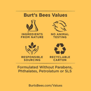 – ORIGEM 100% NATURAL: com uma fórmula de origem 100% natural, este protetor labial Burts Bees é formulado sem parabenos, ftalatos, vaselina ou SLS e nunca foi testado em animais.