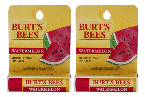 Bálsamo labial hidratante de melancia Burts Bees Blister Unissex de 0,15 onças, pacote com 2