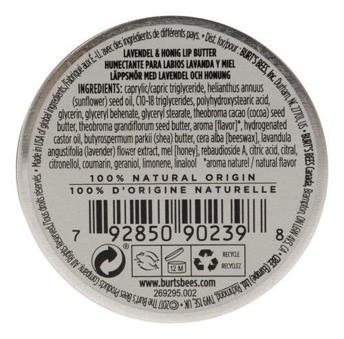 Bálsamo labial unissex Burts Bees Lavander and Honey Lip Butter 0,4 onças