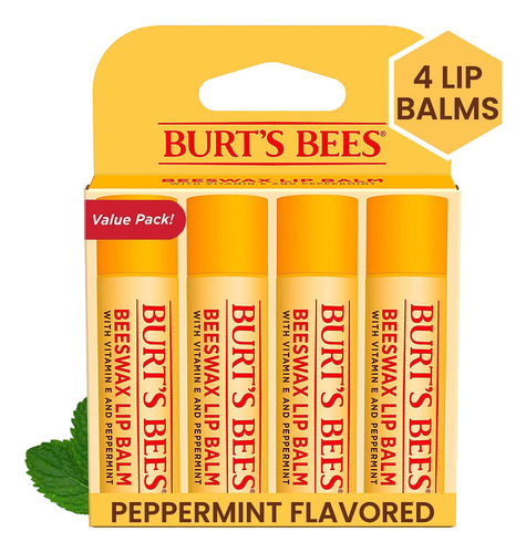 Meias de protetor labial Burt's Bees, presentes de Natal hidratantes para cuidados labiais, cera de abelha original com vitamina E e óleo de hortelã, cuidado labial de origem natural (pacote com 4) — SABOROSO PROTETOR LABIAL: quatro tubos de protetor labial de 0,15 onças do protetor labial Burts Bees Bees para hidratar e suavizar seus lábios — LÁBIOS HIDRATADOS: cada bálsamo é infundido com protetor labial de cera de abelha de origem responsável cera, vitamina E e óleos nutritivos para um tratamento labial condicionador que mantém seus lábios felizes, saudáveis e suculentos – SABOR DE HORTELÃ: Um toque de óleo de hortelã dá um formigamento refrescante único que incentivará você deve aplicar este protetor labial aromatizado repetidamente – NUTRA OS LÁBIOS SECOS OU RACHADOS: O tubo de protetor labial hidratante sem matiz desliza suavemente sobre seus lábios para nutri-los, mantendo-os felizes, saudáveis e hidratados – TERAPIA LABIAL CONDICIONANTE: Este hidratante labial deixa seus lábios macios e refrescados com um acabamento fosco de ingredientes naturais – ORIGEM NATURAL: Formulado sem parabenos, ftalatos, petrolatos um ou SLS, este protetor labial 100% natural revitaliza e embeleza seus lábios com ingredientes limpos para hidratar sem preocupações. Cuidado labial na mão: fácil de guardado no bolso ou na bolsa, este protetor labial natural é perfeito para o verão, inverno, outono e primavera – COMPLETE O CONJUNTO: Não se esqueça dos ótimos produtos da Burts Bees, incluindo uma grande variedade de cremes, loções e muito mais; é fácil criar uma rotina completa de cuidados com a pele com esses produtos acessíveis – Nº 1 RECOMENDADO: Burts Bees é a marca número 1 de cuidados naturais da pele recomendada por dermatologistas (1) (1) Com base em uma pesquisa nacional NielsenIQ de setembro de 2021 com dermatologistas dos Brasil