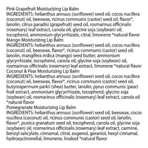 Burts Bees Pink Grapefruit, Mango, Coconut and Pear, and Pomegranate Lip Balm Pack, Lip Moisturizer With Responsibly Sourced Beeswax, Tint-Free, Natural Conditioning Lip Treatment, 4 Tubes, 0.15 oz. – FLAVORFUL LIP BALM: One package contains four 0.15 oz. lip balm tubes of Burts Bees Lip Balm in Pink Grapefruit, Mango, Coconut and Pear, and Pomegranate flavors to moisturize and soften your lips – MOISTURIZED LIPS: Each balm is infused with responsibly sourced beeswax, nourishing oils and butter for a conditioning lip treatment that keeps your lips happy, healthy and juicy – FOUR REFRESHING FLAVORS: Delight the senses with Pink Grapefruit, Mango, Coconut and Pear, and Pomegranate flavors that will encourage you to apply flavored lip balm over and over again – NOURISH DRY OR CHAPPED LIPS: The tint-free tube of moisturizing lip balm glides on your lips smoothly to nourish them, keeping lips happy, healthy and hydrated – CONDITIONING LIP THERAPY: This lip moisturizer leaves your lips smooth and refreshed with a matte finish from natural ingredients – NATURAL ORIGIN: Formulated without parabens, phthalates, petrolatum or SLS, this 100% natural lip balm revitalizes and beautifies your lips with clean ingredients to moisturize worry-free – ON-HAND LIP CARE: Easy to tuck into a pocket or store in a purse, this natural lip balm is perfect for summer, winter, fall and spring weather – COMPLETE THE SET: Dont forget about great Burts Bees products, including a wide variety of creams, lotions and more; its easy to create a full skin care routine with these affordable products – NO. 1 RECOMMENDED: Burts Bees is the No. 1 dermatologist-recommended natural skin care brand (1) (1) Based on a September 2021 NielsenIQ national survey of U.S. Dermatologists