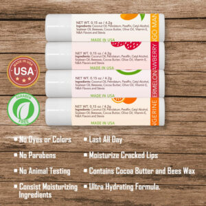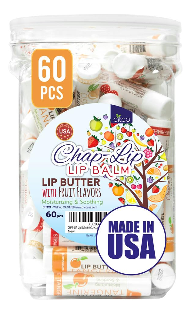 Bálsamo labial barato Manteiga labial com sabores de frutas, 60 jarras de manga, tangerina, morango e melancia – OS MELHORES INGREDIENTES – O que há de tão diferente na manteiga labial Chap-Lip? Os ingredientes e como se sente em seus lábios! Nosso chap stick é feito com os melhores ingredientes e é seguro para meninas e meninos de todas as idades. Nossos protetores labiais contêm ingredientes premium que são conhecidos por serem bons para lábios secos e rachados. – MANTEIGA DE CACAU – O que mais? Além de ter manteiga de cacau (daí a homônima manteiga labial), nossos bálsamos são infundidos com muito óleo de coco. (também conhecido como óleo de Cocos Nucifera). Este protetor labial contém manteiga de cacau que ajuda a reduzir a inflamação. Tem ácidos graxos saudáveis que ajudam a hidratar a pele. – Ótima variedade de sabores – Nossas 60 unidades vêm em morango, tangerina, manga e melancia, enquanto nossos 48 pacotes de sortimento vêm com 2 sabores adicionais, incluindo melancia e manga. Usamos apenas sabores (nunca fragrâncias). Os sabores são suaves e sutis. Nunca é muito arrogante. – HIDRATE SEUS LÁBIOS – Nosso protetor labial é terapêutico para secar os lábios durante os dias frios de inverno. Basta aplicar e sentir o alívio. Melhor do que qualquer óleo labial ou outro protetor labial pegajoso. Você não sentirá que precisa continuar aplicando repetidamente. – Calmante – A manteiga labial Chap-Lip é macia, amanteigada e cremosa com um toque de doçura (da Stevia). A manteiga labial hidrata, hidrata e suaviza os lábios. Nosso protetor labial a granel exala um aroma suave ao toque. É o pacote de cuidados perfeito para mulheres ou o substituto do brilho labial pegajoso. – Marca premium – Feito nos EUA, o chap-Lip é feito nos EUA com os mais altos padrões. NÃO É TESTADO EM ANIMAIS