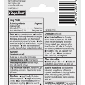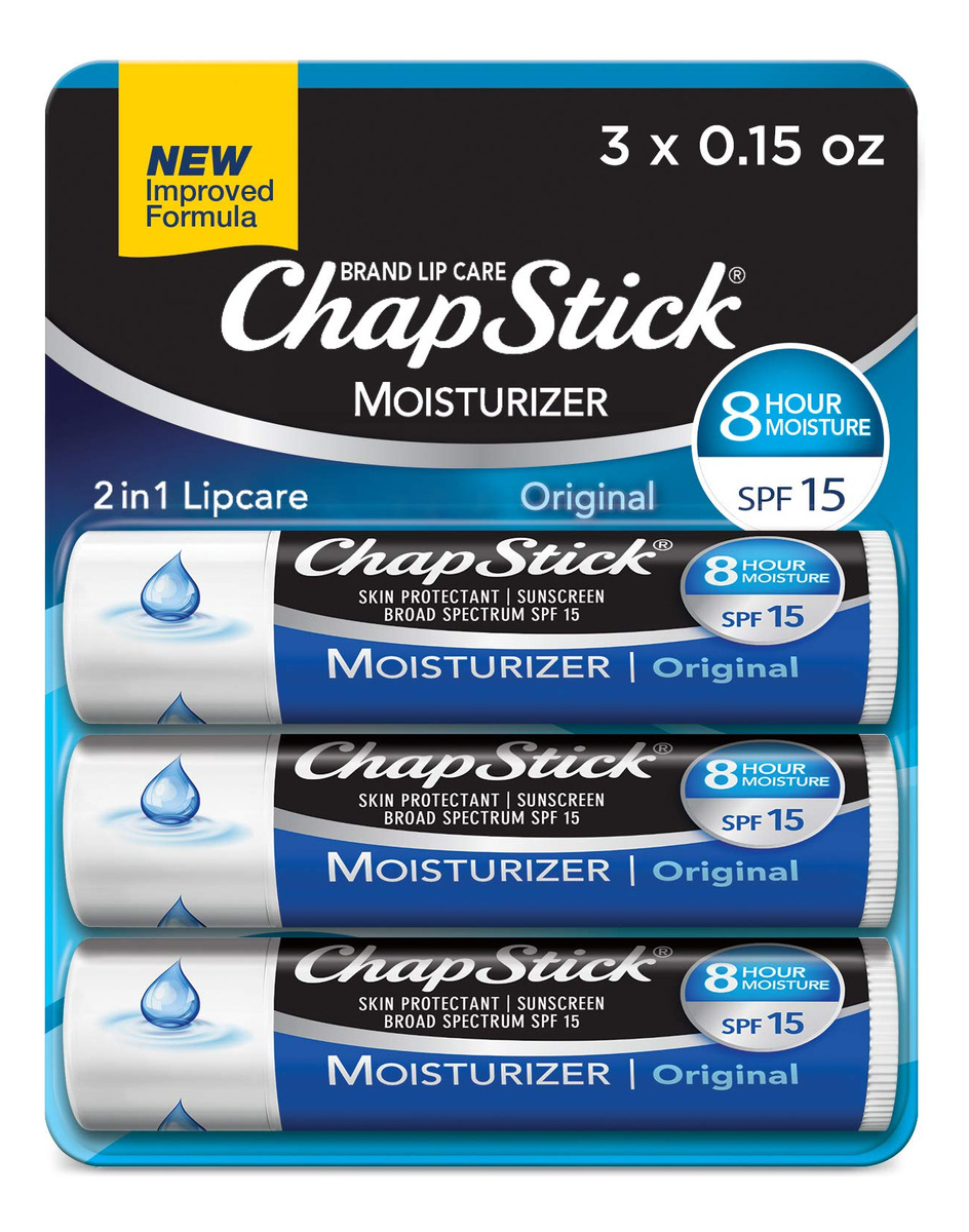 Tubos de protetor labial originais do hidratante ChapStick, SPF 15 e protetor de pele – 0,15 onças (pacote com 3) – Um pacote de três tubos de protetor labial originais do hidratante ChapStick de 0,15 onças, SPF 15 e protetor de pele – O hidratante original ChapStick mantém seus lábios hidratados e protegidos dos raios solares por até oito horas – O hidratante ChapStick original sem sabor é familiar e reconfortante – Cada SPF de 0,15 onças O stick é portátil e fácil de aplicar quando você mais precisa. Não colorido e sem parabenos, este protetor labial SPF 15 possui proteção solar hidratante. Guarde-o Bálsamo labial ChapStick Original no bolso, bolsa ou gaveta para lábios com aparência saudável — Guarde este protetor labial hidratante ChapStick original no bolso, bolsa ou gaveta para ter lábios com aparência saudável