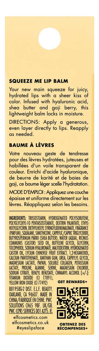 Bálsamo Labial E.l.f. Squeeze Me Moisturizing W/ Sheer Tint
