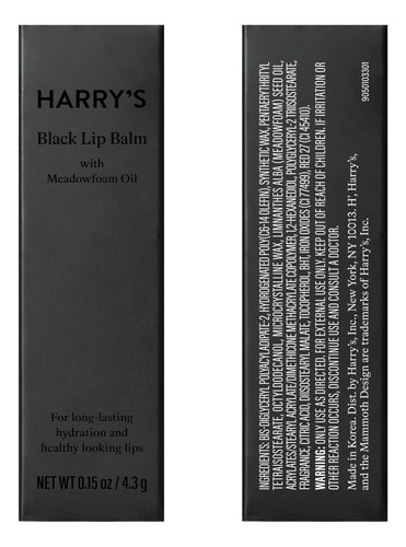 Bálsamo labial Harrys Black para homens – Bálsamo labial masculino hidratante com acabamento natural – Tecnologia coreana de cuidados com a pele com óleo de espuma de prado
