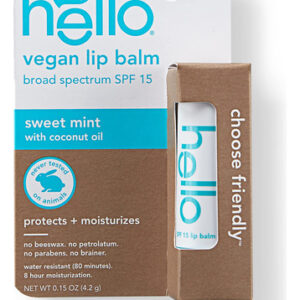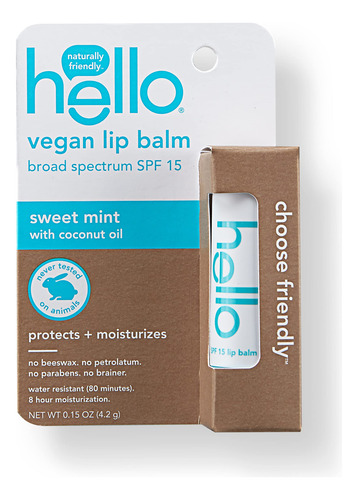 Hello Moisturizing Vegan Lip Balm SPF 15, hortelã doce com óleo de coco, sem cera de abelha, sem petrolato e sem parabenos, 0,15 onças — contém um tubo de 0,15 onças de protetor labial hello hidratante vegano de menta doce SPF 15