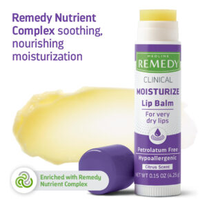 Bálsamo labial clínico Medline Remedy, 3 unidades, aroma cítrico, hidratante, nutritivo, rico em nutrientes, óleos naturais calmantes, revitalizante, reconfortante, condicionador de pele, bastão de 0,15 onças — Hidratante que acalma e protege — Não contém produtos petroquímicos que obstruam a pele — Composto por óleos totalmente naturais, como óleo de girassol, soja e jojoba — A manteiga de karité e a cera de abelha fornecem ácidos graxos ômega 3 e ômega 6 essenciais – os cristais de sabor encapsulados continuam liberando o sabor cítrico por horas