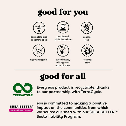 Nosso protetor labial orgânico certificado pelo USDA e recomendado por dermatologistas é formulado para peles sensíveis e feito com manteiga de karité calmante, óleo de coco leve e antioxidantes protetores. Os bálsamos eos usam ingredientes de origem sustentável que fornecem hidratação durante todo o dia, deixando seus lábios macios, nutridos e deliciosamente deliciosos.