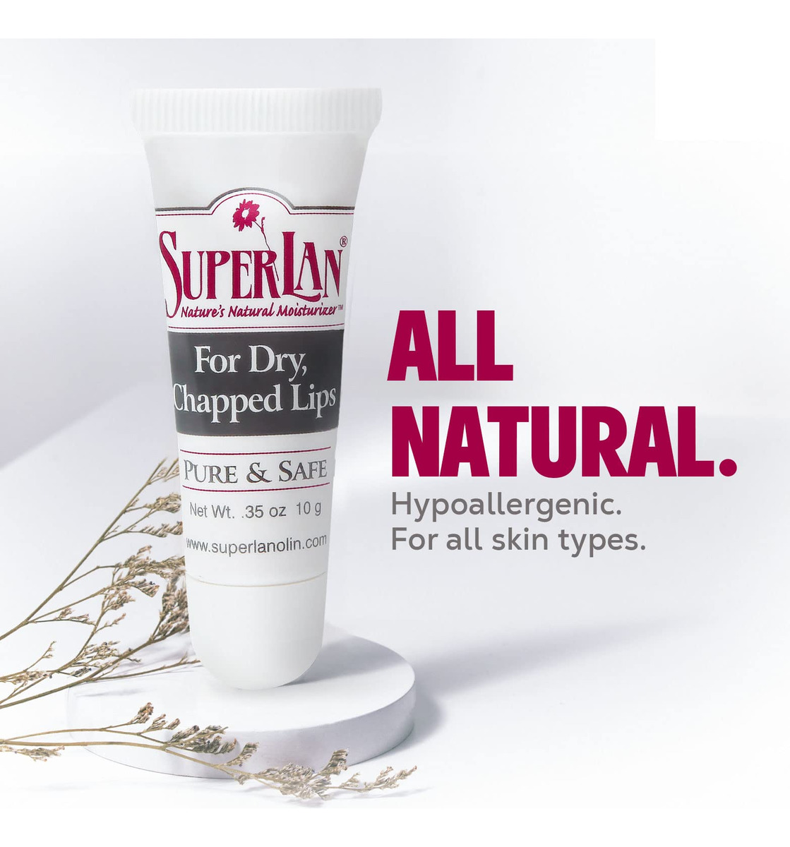 PROTETOR LABIAL DE LANOLINA SUPERLAN COM LANOLINA E ÓLEO DE JOJOBA – A SOLUÇÃO DE CUIDADO LABIAL MAIS PURA, 100% NATURAL E COM 2 INGREDIENTES QUE SEUS LÁBIOS SECOS PRECISAM! FEITO DE APENAS 2 INGREDIENTES PUROS O hidratante labial Superlan é feito de apenas dois ingredientes naturais e orgânicos [óleo de lanolina e jojoba], tornando-o o creme labial hidratante mais puro do mundo! Zero produtos químicos totalmente naturais e orgânicos. Zero toxinas. Zero parabenos. Zero subprodutos do petróleo. Zero cera de abelha. Um protetor labial orgânico totalmente natural que cuida suavemente de todos os tipos de pele. 100% HIPOALERGÊNICO Nosso protetor labial de lanolina de grau médico, ultrapuro e refinado é cuidadosamente processado para remover alérgenos identificados. Uma escolha perfeitamente segura para crianças e adultos! QUALIDADE KOSHER: Este protetor labial Kosher é adequado para uso mesmo durante a Páscoa. Atendendo aos mais rigorosos padrões Kosher, você pode usá-lo com a máxima tranquilidade. Dois ingredientes. Zero produtos químicos. 100% eficaz. – Hidrata e hidrata até os lábios mais secos – Cura lábios rachados e escamosos – Protege os lábios secos de ficarem mais secos – Ajuda a reparar lábios rachados – Protege os lábios do vento e do frio – Alivia a coceira e o desconforto. Tamanho de bolso e ideal para viagens. Vindo em um tubo estilo brilho labial, este bálsamo de 0,35 onças é perfeito para seu conforto em qualquer lugar. Guarde-o no bolso ou na bolsa para hidratar os lábios secos em qualquer lugar, a qualquer hora! ADEQUADOS PARA HOMENS, MULHERES E CRIANÇAS. Totalmente isentos de corantes, sabores artificiais ou qualquer outro preenchimento, nossos protetores labiais de lanolina totalmente naturais fazem maravilhas para qualquer homem, mulher e até criança. CREME LABIAL DE LANOLINA SEM CRUELDADE Na Superlan, fazemos questão de criar apenas produtos de beleza e cuidados labiais livres de crueldade que nunca foram – e nunca serão – testados em animais. DEIXE QUE OS INGREDIENTES MAIS PUROS DA NATUREZA CUIDEM MELHOR DE SEUS LÁBIOS. PEÇA O SEU HOJE! – O PROTETOR LABIAL DE LANOLINA MAIS PURO DO MUNDO SOMENTE 2 INGREDIENTES: O batom orgânico Superlan é o bálsamo de lanolina mais puro do mundo, pois é feito exclusivamente de dois elementos puros e naturais: lanolina de grau médico e óleo de jojoba. Trabalhando juntos, esses dois ingredientes maravilhosos cuidarão melhor de seus lábios rachados. – TOTALMENTE NATURAIS E ORGÂNICOS PARA LÁBIOS SEDOSOS, TOTALMENTE REPARADOS E SAUDÁVEIS: as propriedades hidratantes e curativas da lanolina e do óleo de jojoba não apenas reparam seus lábios rachados, mas também os protegem de mais descamação, coceira e até sangramento. E a melhor parte? Nosso protetor labial 100% orgânico é totalmente isento de produtos químicos, derivados de petróleo, cera de abelha, corantes, produtos químicos ou outros preenchimentos. – CREME LABIAL HIPOALERGÊNICO ADEQUADO PARA HOMENS, MULHERES E CRIANÇAS: Nossos produtos de cuidado labial de lanolina usam a lanolina refinada mais pura e de grau médico que passa por um processo patenteado altamente complexo para remover completamente qualquer alérgeno identificado. O resultado? Um protetor labial totalmente hipoalergênico, adequado para homens, mulheres e até mesmo para as crianças mais novas! – CERTIFICADO KOSHER, LIVRE DE CRUELDADE E SEGURO PARA TODOS OS TIPOS DE PELE: este batom orgânico com certificação Kosher pode ser usado até mesmo durante a Páscoa sem quaisquer “ses” e “mas”. Nosso tratamento labial suave e eficaz também pode ser aplicado sobre feridas abertas ou lábios sangrando. Sim, é tão puro. Além disso, todos os produtos Superlan são livres de crueldade e nunca foram testados em animais. – Tamanho que cabe no bolso. Uma pequena quantidade vale muito: com uma síntese cheia de lanolina que faz maravilhas na revitalização dos lábios secos, você pode usar a menor quantidade desse protetor labial hidratante e ainda obter resultados incríveis. Compacto o suficiente para caber no seu bolso, você pode finalmente combater aqueles lábios irritados, embaraçosamente escamosos e rachados em qualquer lugar, a qualquer hora!