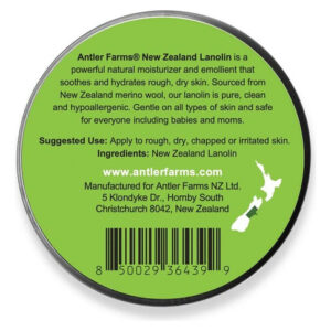 MADE IN NEW ZEALAND – Antler Farms Lanolin is sourced from free grazing Merino sheep. Our sheep are raised in the beautiful highlands of New Zealands south island, where they live outdoors and feed on green pasture year round. No hormones, antibiotics, hyper-immunizations, or GMOs are used to raise our sheep. POWERFUL MOISTURIZER – Our lanolin is a powerful natural moisturizer and emollient. It has moisture binding and humectant properties that soothe, soften and hydrate rough, dry skin. Perfect for human use due to its similarity to our skins natural oils and gentle on all types of skin. PROTECTS SKIN – Antler Farms New Zealand Lanolin protects against harsh environmental conditions. It forms a breathable skin barrier to keep impurities out while locking moisture in. Prevents dry, chapped skin while restoring much-needed moisture from within. CLEAN SOURCED – High quality products begin at the source. Antler Farms New Zealand Lanolin is produced in one of the cleanest places on earth. Our lanolin is 100% pure, clean and hypoallergenic, with no petroleum, parabens, preservatives, sulfates, additives or dyes. PHARMACEUTICAL GRADE – Antler Farms New Zealand Lanolin is USP and EP grade, meaning that it meets or exceeds purity requirements of the United States and European Pharmacopeia. It is safe for daily use for everyone, including babies and nursing mothers. – MADE IN NEW ZEALAND – Antler Farms Lanolin is sourced from free grazing Merino sheep. Our sheep are raised in the beautiful highlands of New Zealands south island, where they live outdoors and feed on green pasture year round. No hormones, antibiotics, hyper-immunizations, or GMOs are used to raise our sheep. – POWERFUL MOISTURIZER – Our lanolin is a powerful natural moisturizer and emollient. It has moisture binding and humectant properties that soothe, soften and hydrate rough, dry skin. Perfect for human use due to its similarity to our skins natural oils and gentle on all types of skin. – PROTECTS SKIN – Antler Farms New Zealand Lanolin protects against harsh environmental conditions. It forms a breathable skin barrier to keep impurities out while locking moisture in. Prevents dry, chapped skin while restoring much-needed moisture from within. – CLEAN SOURCED – High quality products begin at the source. Antler Farms New Zealand Lanolin is produced in one of the cleanest places on earth. Our lanolin is 100% pure, clean and hypoallergenic, with no petroleum, parabens, preservatives, sulfates, additives or dyes. – PHARMACEUTICAL GRADE – Antler Farms New Zealand Lanolin is USP and EP grade, meaning that it meets or exceeds purity requirements of the United States and European Pharmacopeia. It is safe for daily use for everyone, including babies and nursing mothers.