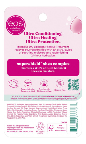 eos The Hero Lip Repair, hidratação 24 horas para lábios severamente secos, extrato natural de morango, hipoalergênico, 0,14 onças, pacote com 2 — Tratamento reparador labial — Morango: nosso protetor labial reparador condiciona e protege os lábios severamente secos. Agora disponível em um pacote duplo para o dobro da hidratação! – ULTRA HIDRATAÇÃO E PROTEÇÃO: Nosso tratamento labial condiciona e protege os lábios severamente secos, fornecendo hidratação imediata e 24 horas. Tudo em um sabor refrescante e delicioso de frutas vermelhas! – CUIDADO HIDRATANTE: passe este protetor labial condicionador e ultra hidratante com manteiga de karité totalmente natural para transformar seus lábios de mais secos em mais hidratantes! – HIDRATAÇÃO INSTANTÂNEA E GOSTOSA: Obtenha um protetor labial que fornece hidratação instantânea e 24 horas, ao mesmo tempo em que obtém esse delicioso sabor natural de frutas vermelhas! – SuperShield SHEA: Nosso protetor labial é feito com sabor de manteiga de karité totalmente natural e de origem sustentável e extrato de morango. Também é hipoalergênico (perfeito para peles sensíveis). Sem parabenos e ftalatos. Certificado pela PETA. Nenhum produto testado em animais.