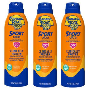 O protetor solar BW5EXP3 Banana Boat Sport Ultra SPF 50+ oferece proteção solar de alto desempenho projetada especificamente para uso ativo ao ar livre. Este pacote de três oferece acesso conveniente a uma proteção robusta que permanece no sol, na água da piscina, na água do mar, no vento, no suor, na areia e no calor extremo. Aqui estão os detalhes sobre este protetor solar:
