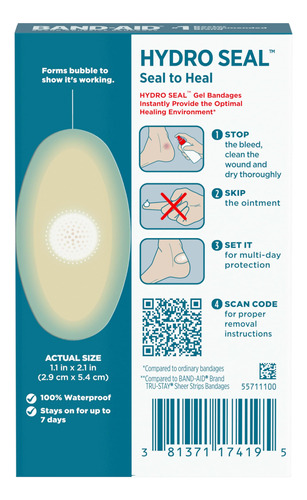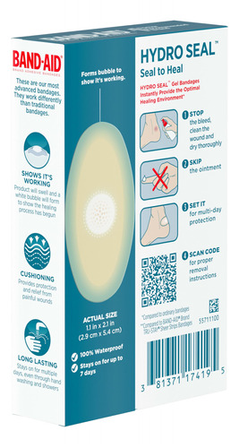 Bandagens adesivas da marca Band-Aid, bandagens impermeáveis de longa duração, pacote de 6 quilates a 6 unidades de bandagens adesivas da marca Band-Aid, bandagens de gel hidrocoloide Hydro Seal, nossas bandagens impermeáveis mais avançadas que funcionam de forma diferente das bandagens adesivas da marca Band-Aid, nossas bandagens de tratamento de feridas mais avançadas que funcionam de forma diferente das bandagens tradicionais, que selam feridas para uma melhor cicatrização – A impermeável bandagens hidrocolóides fornecem o ambiente ideal para cicatrização de feridas. Eles são projetados para uso a longo prazo e mostram que o processo de cicatrização já começou. Esta bandagem ajuda a prevenir a formação de crostas que prolongam a cicatrização – A bandagem hidrocolóide de primeiros socorros é adequada para muitos tipos de feridas e ideal para uso nos calcanhares para proteção e amortecimento de bolhas. As bandagens de gel permanecem por até 7 dias, mesmo durante o banho – a cobertura da ferida é feita com amortecimento para ajudar a proteger feridas menores e aliviar cortes dolorosos, arranhões e bolhas. As bandagens estéreis embaladas individualmente não são feitas com látex de borracha natural – a bandagem avançada de primeiros socorros evita que feridas e bolhas sequem e bloqueia o poder de cura natural do corpo. Mantenha essas bandagens hidrocolóides à prova d'água em qualquer kit de primeiros socorros ou suprimentos caseiros para tratamento de feridas para cuidar de todos os seus pequenos cortes e arranhões
