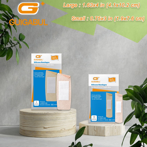 Silicone Adhesive Bandages for Sensitive Fragile Skin Various Sizes – Latex Free Bandaids for Kids and Elderly by G+ GUIGABUL 50 ct (0.75×3) + 20 ct (1.63×4) – Medical grade silicone provides gentle removal for super sensitive thin skin without pulling skin or hair. Truly no pain when removed. – These soft bandages made with flexible fabric can move with you everywhere. Perfect for joints that require constant movement and able to be pasted repeatedly. – Unique adhesive technology offers long lasting open wound care to avoid frequent shedding, even when wet. Stay put all day! – Waterproof and breathable band aids, the nonstick wound pad has 4-sided sealed to keep out germs and dirt. It form an optimal healing environment for fast healing. – Medium(50 ct) and extra large(20 ct) assorted in bulk, each strip is in a clear wrapper to keep it sterile. School, office, car, travel and anywhere, take a pack with you to deal with emergency wound treatment.