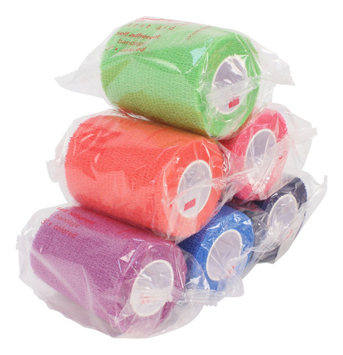 Ever Ready First Aid Self Adherent Cohesive Bandages 3 x 5 Yards – 12 Count, Rainbow Colors – STRONG & SELF-ADHESIVE – Ever Ready First Aid bandages are designed to offer excellent support. These bandages will not slip, meaning you wont have to frequently readjust them. The self adhesive bandages will stay in place even when we tor sweaty. The self adhesive design allows the bandages to be applied without the use of any clips or pins to stay in place. – STRETCHY & COMFORTABLE – The durable elastic material allows the bandages to be applied to virtually any body part quickly and easily. The fabric can easily be torn by hand, no shears or scissors required – SOFT, BREATHABLE MATERIAL – The porous, lightweight material allows the injured area to breath, which facilitates healing and recovery. – RAINBOW VARIETY PACK – Comes in six fun colors; green, pink, red, purple, blue, and navy. Great for kids!