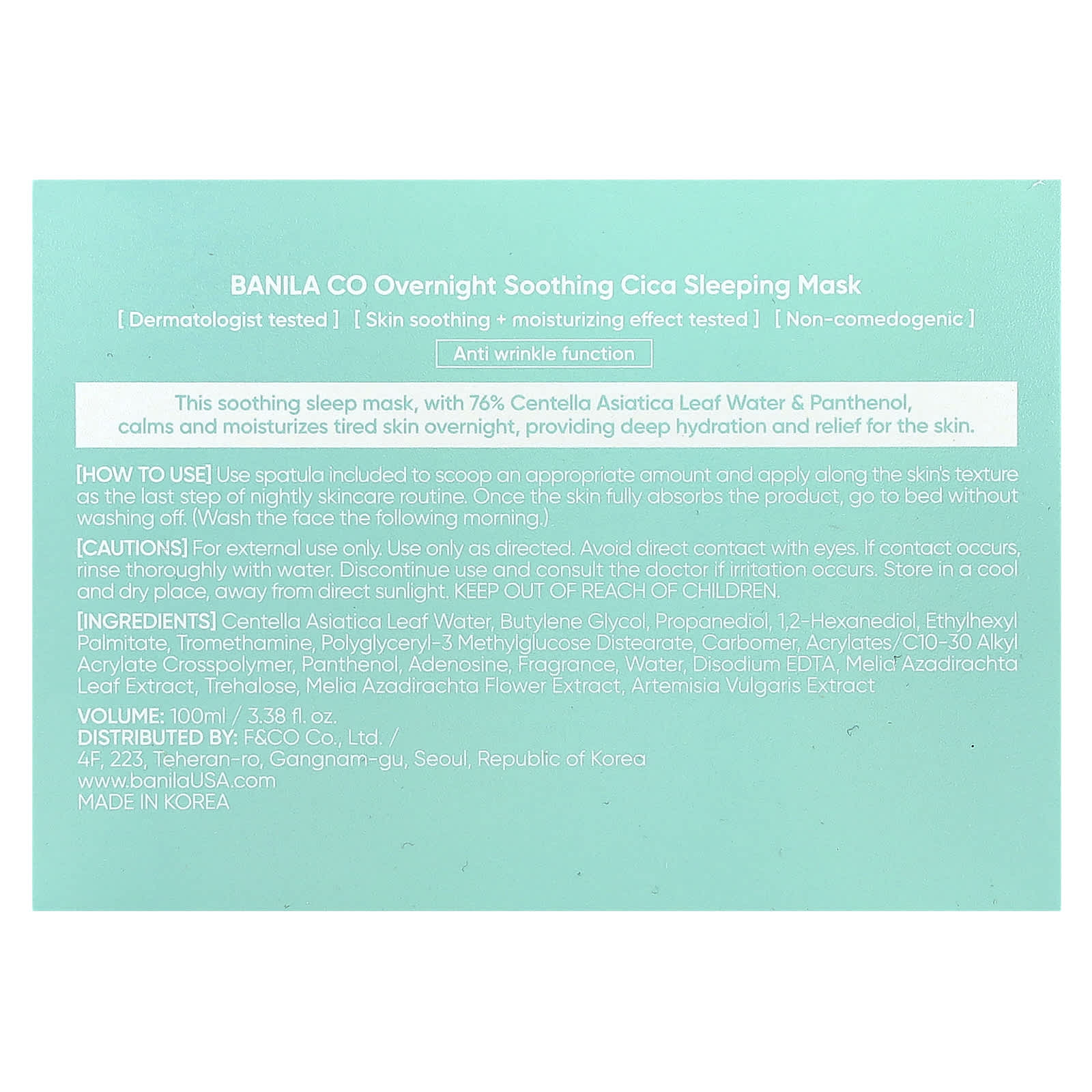 Esta máscara noturna calmante, com 76% de Água da Folha de Centella asiatica e Pantenol, acalma e hidrata a pele cansada durante a noite, proporcionando hidratação profunda e alívio para a pele.