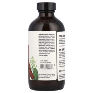 Óleo de gergelim refinado *, óleo de coco refinado *, guduchi *, erva-doce *, amalaki *, haritaki *, bibhitaki *, cinnamon (zeylanicum & cassia) essential oils*, óleo essencial de cravo *.