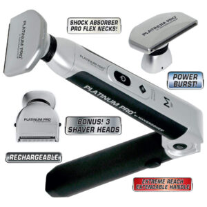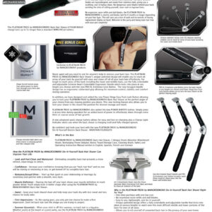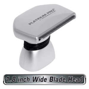 MANGROOMER — Novo barbeador de cabelo traseiro PLATINUM PRO, cabeça de fixação completa com amortecedor no pescoço e design de lâmina de 1,8 polegadas! – O novo barbeador de cabelo para costas inteiras PLATINUM PRO da MANGROOMER com pescoço amortecedor e lâmina de 1,8 polegadas de largura – A nova cabeça de lâmina de 1,8 polegadas de largura para depilar áreas musculares mais detalhadas, além de permitir um resultado de barbear extremamente próximo e suave, sem o risco de pelos encravados causados pelas lâminas de barbear – A nova cabeça de fixação ultralarga deve ser usada somente com o barbeador de cabelo traseiro PLATINUM PRO by MANGROOMER. Este é o nosso barbeador de costas mais avançado já fabricado e nossa 8ª geração. – Esta cabeça de fixação completa para barbeador de cabelo para trás inclui o pescoço absorvente de choque para acompanhar todos os contornos das costas com facilidade e garantir o contato perfeito da lâmina com a pele, além da nova lâmina de 1,8 polegadas de largura com lâminas hipoalergênicas de aço inoxidável. SEM lâminas de barbear perigosas! – Limpa facilmente usando a escova de limpeza fornecida com o barbeador ou enxaguando com água corrente. Recomenda-se substituir a lâmina a cada seis meses ou antes, com uso intenso. Em comparação com uma navalha, você economizará centenas de dólares por ano.