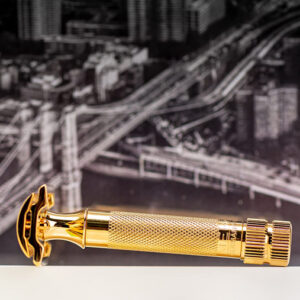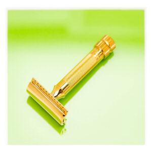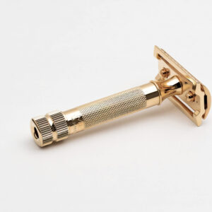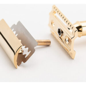 Navalha de segurança Merkur Classic de 2 peças, banhada a ouro, 1 unidade — Alça resistente com design gravado — Qualidade comprovada — Aprovada pelo estilista