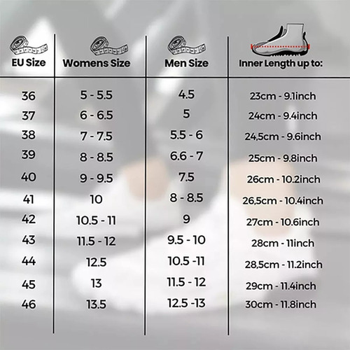Tamanho 46: Adequado para pés de 27,5 a 28 cm de comprimento
