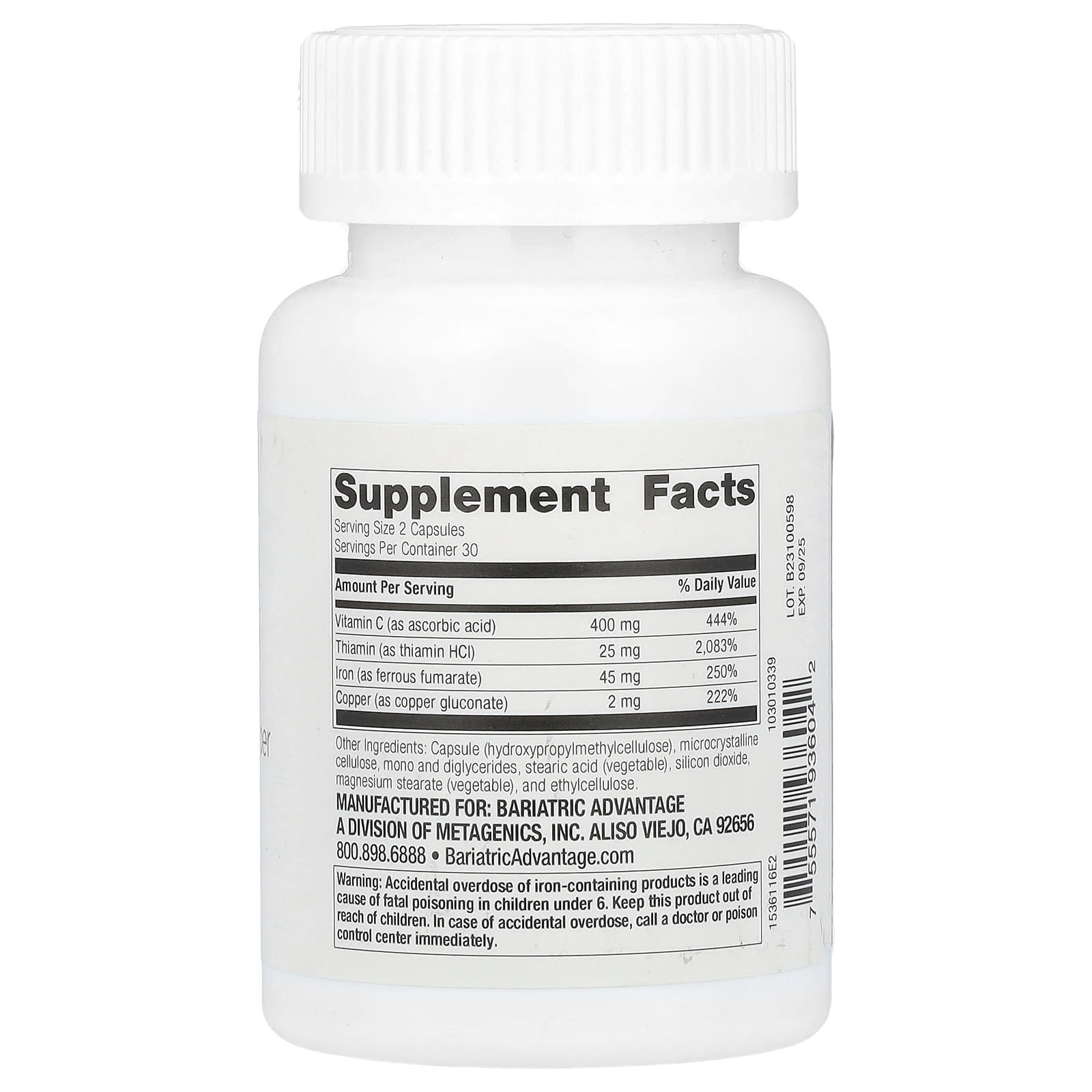 Bariatric Advantage Ferro com Vitamina C Tiamina e Cobre 60 Cápsulas – Bariatric Advantage Suplementos Minerais Ferro.
